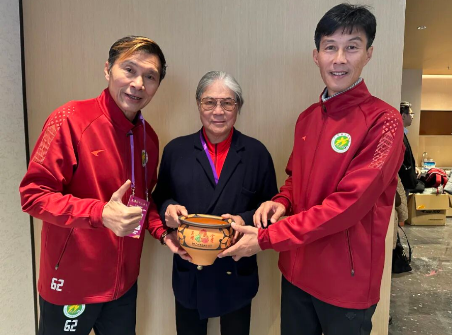 2026年1月3日,第44屆“省港杯”足球賽(第二回合)在廣州南沙大灣區(qū)文體中心體育場舉行?;顒蝇F(xiàn)場,一場特殊的文化交流引人注目——三門峽市非物質(zhì)文化遺產(chǎn)代表性傳承人王新軍委托參加省港杯元老賽的前國家足球隊隊長池華明、區(qū)楚良,向蒞臨觀賽的中國香港體育協(xié)會暨奧林匹克委員會會長、亞奧理事會第一副主席霍震霆,贈送“全運花開”仰韶彩陶盆,以此表達對霍氏家族的由衷敬意,感謝其為祖國體育事業(yè)及足球發(fā)展作出的重要貢獻。中國香港足球協(xié)會主席霍啟山一同見證了這一時刻。